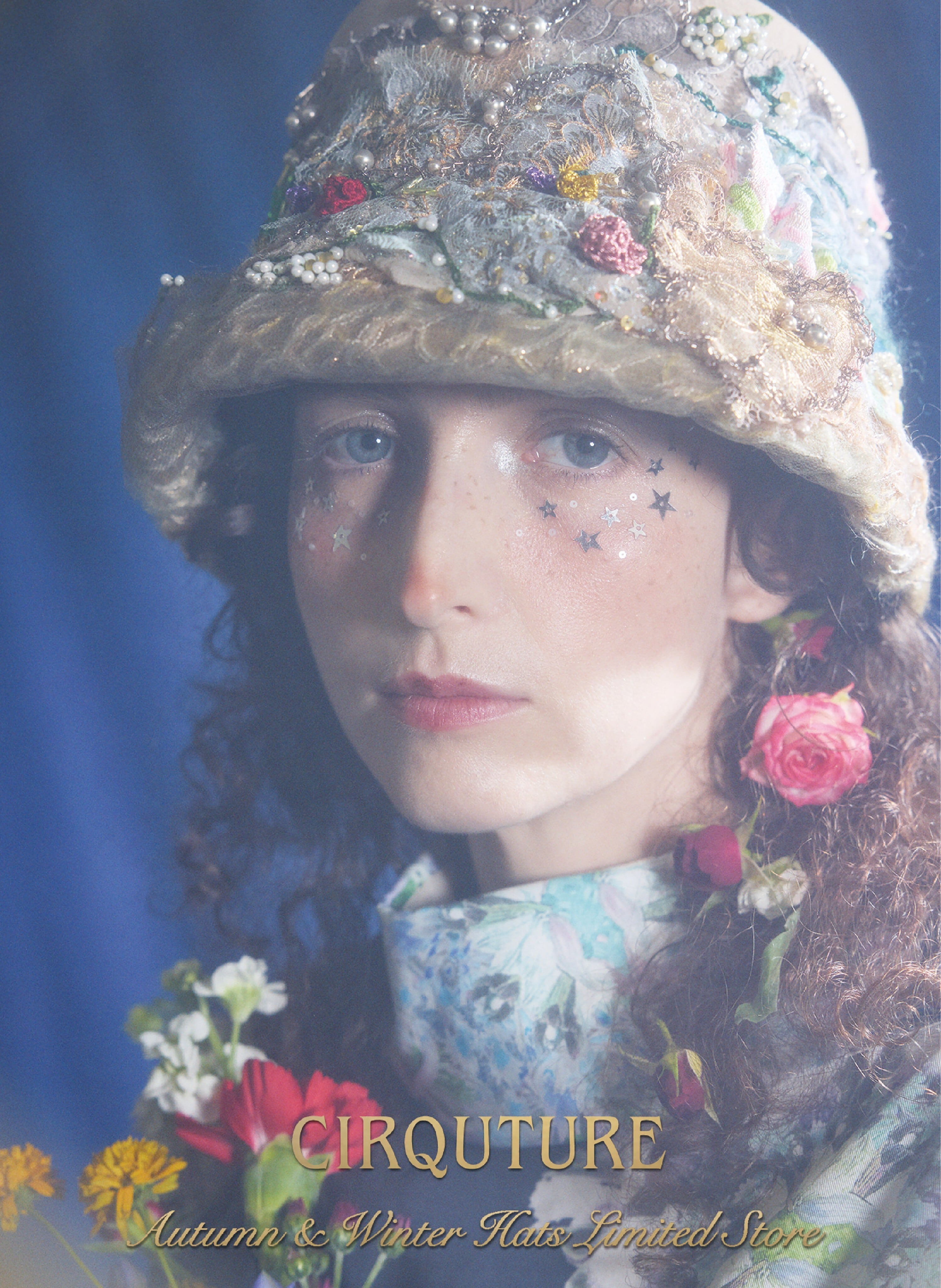 〜オフィーリアの水の精霊〜 シェイクスピアの劇作に登場する悲劇のヒロイン・オフィーリアを、悲劇としてではなく、月夜の森に棲む美しい水の精霊として捉えたアートピース。水辺に揺れる花々やきらめきを思わせる装飾をちりばめ、幻想的でありながらどこか儚い世界観を表現しました。 フランス製の最高級レースやスパングル、刺繍の絹糸、手描きで染めたレース、そして一点一点かぎ針で編んだ花やビーズ細工。数え切れないほどの素材と手仕事を重ね、360度どこから見ても美しい装飾を施しています。 帽子のフォルムは、クラシックなカサブランカ型。戦前から変わらぬ製法で、熟練の帽子職人が木型に入れて一つひとつ丁寧に成形しました。 カラーは2色展開。Beigeはミレイの描いた「オフィーリア」そのままをイメージした色合い。MintはCIRQUTURE独自の解釈による、より淡く儚いファンタジックな色合いのオフィーリア。どちらも、帽子でありながらアートそのもののような存在感を放っています。「頭に乗せるアート」として、お客様に纏っていただけることを願っています。 【カラー】 Beige Mint 【素材】 本体:羊毛100% レース:コットン64% ナイロン33% ポリウレタン3% リボン:レーヨン80% ナイロン20% つば先部分:モヘヤ50% レーヨン30% ナイロン20% 【サイズ】 ONESIZE 約57.5cm。サイズ調節付き-2cm 【生産国】 日本製 CIQ035r