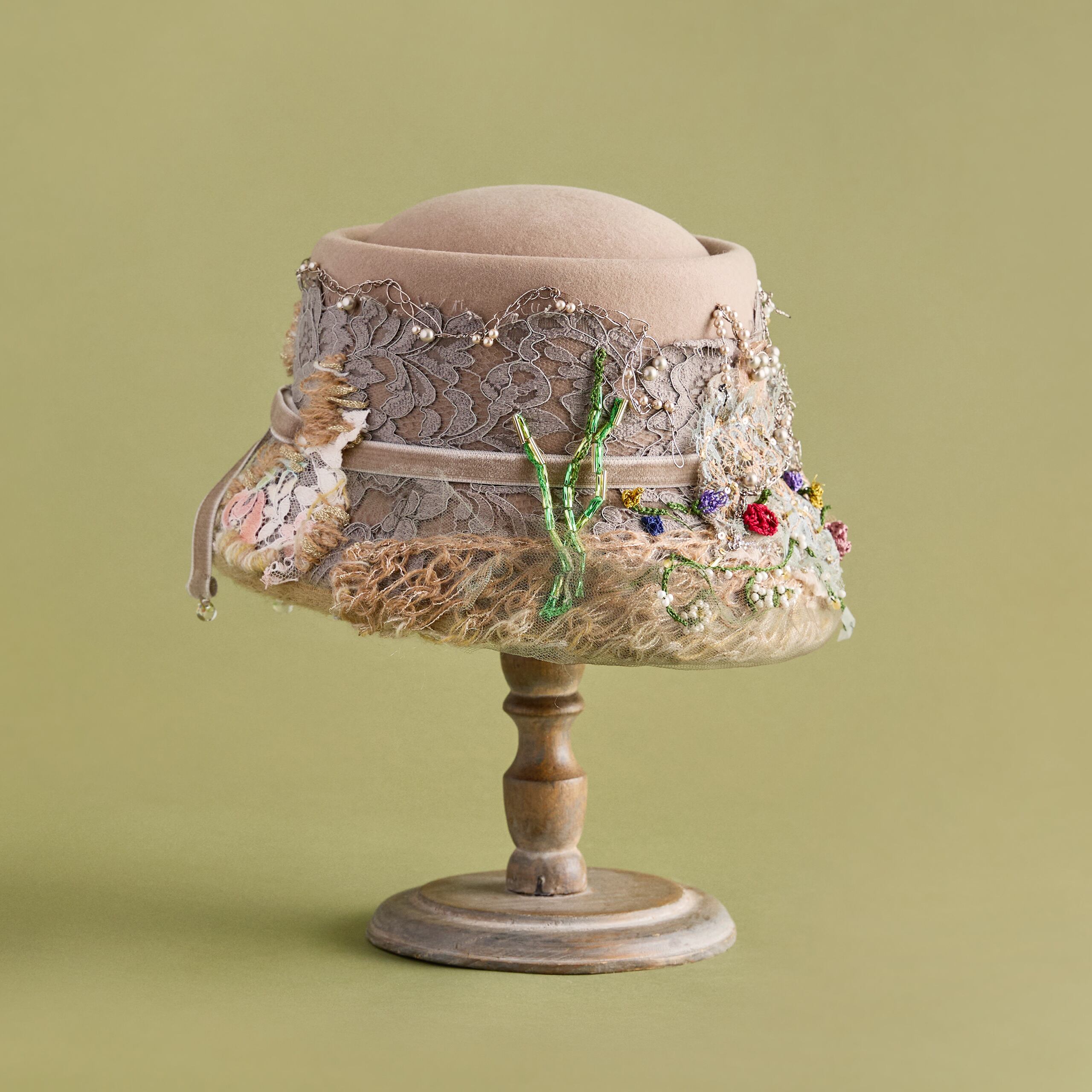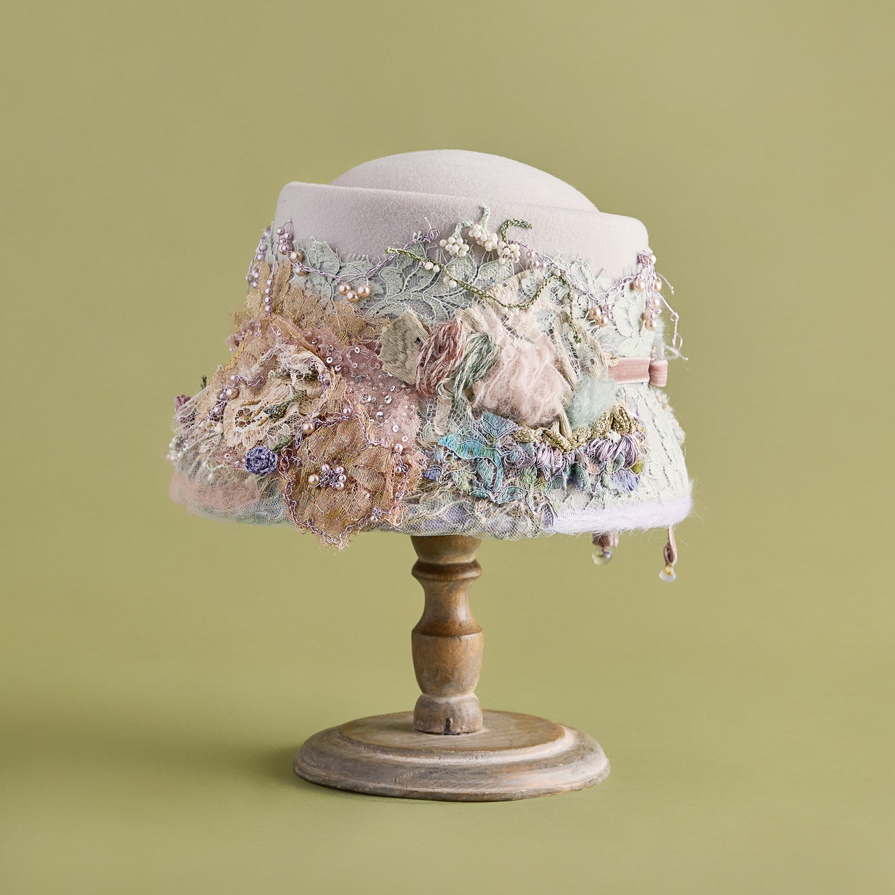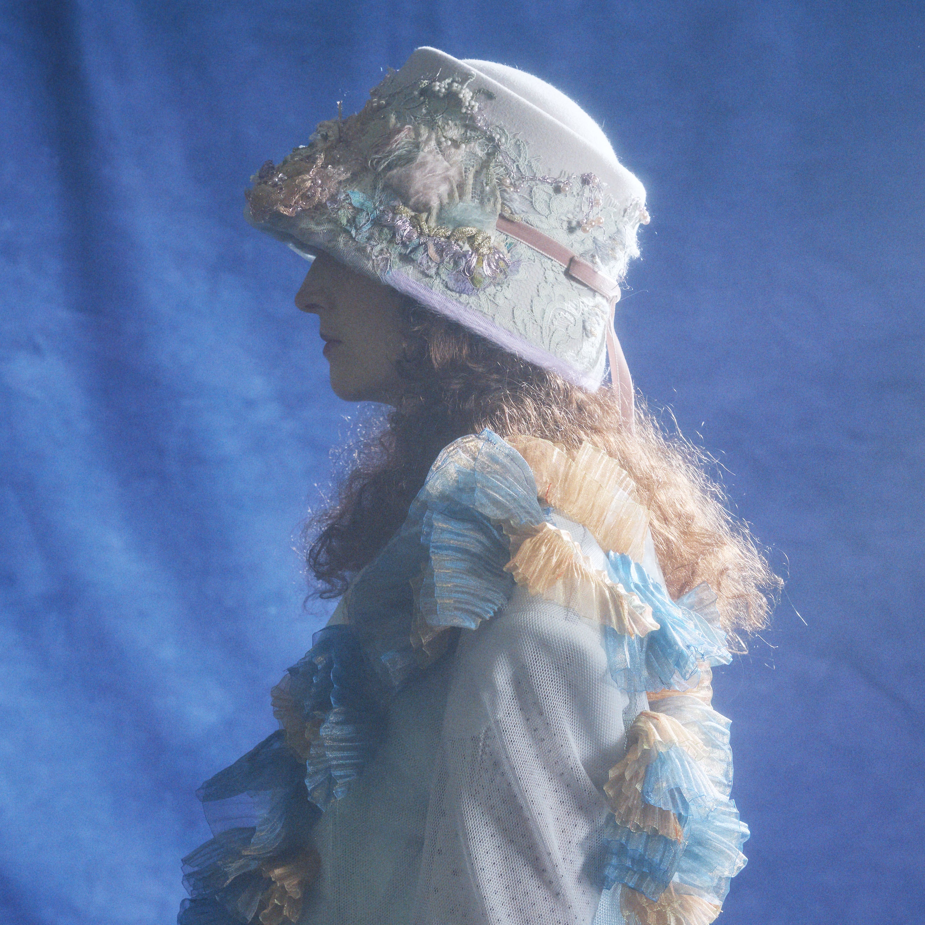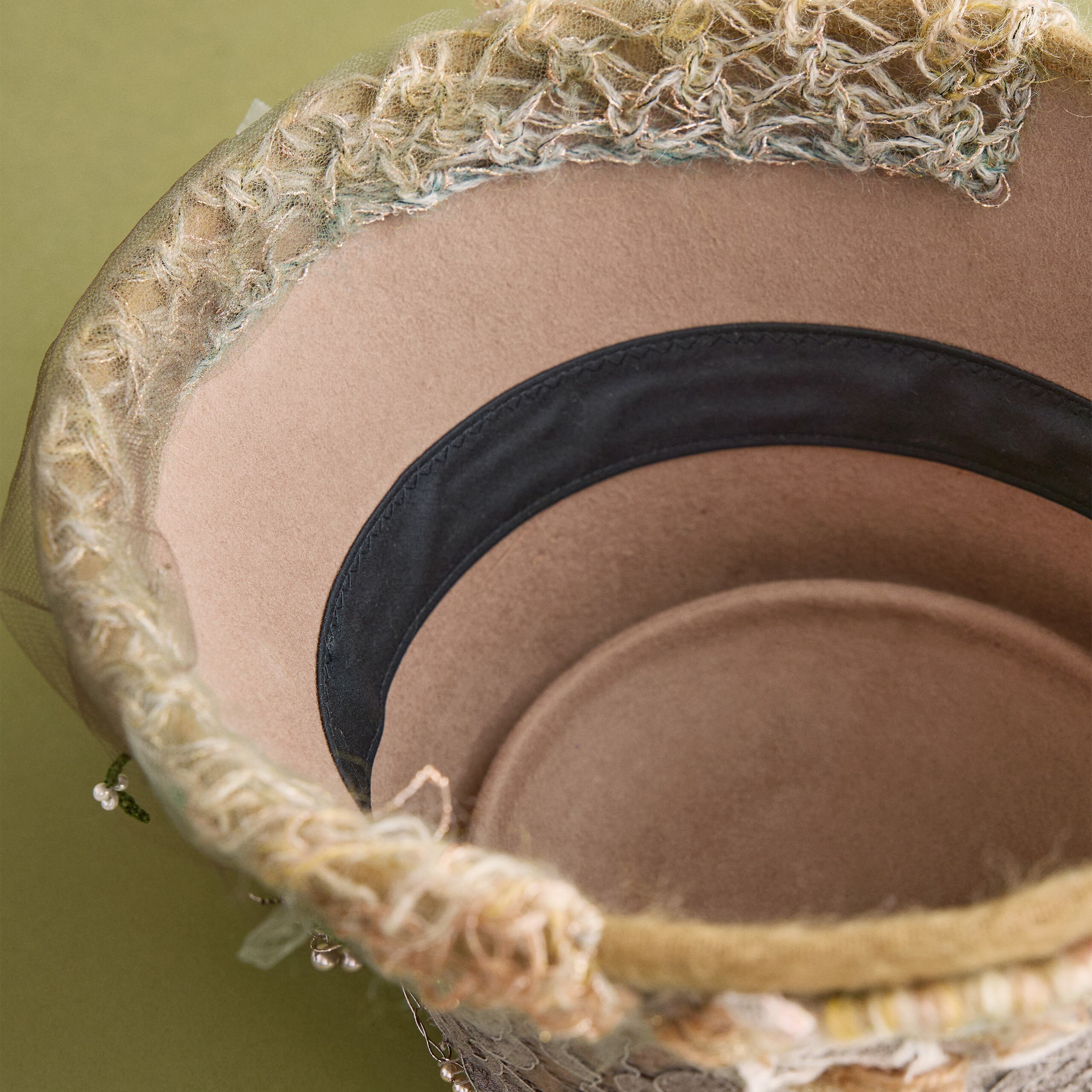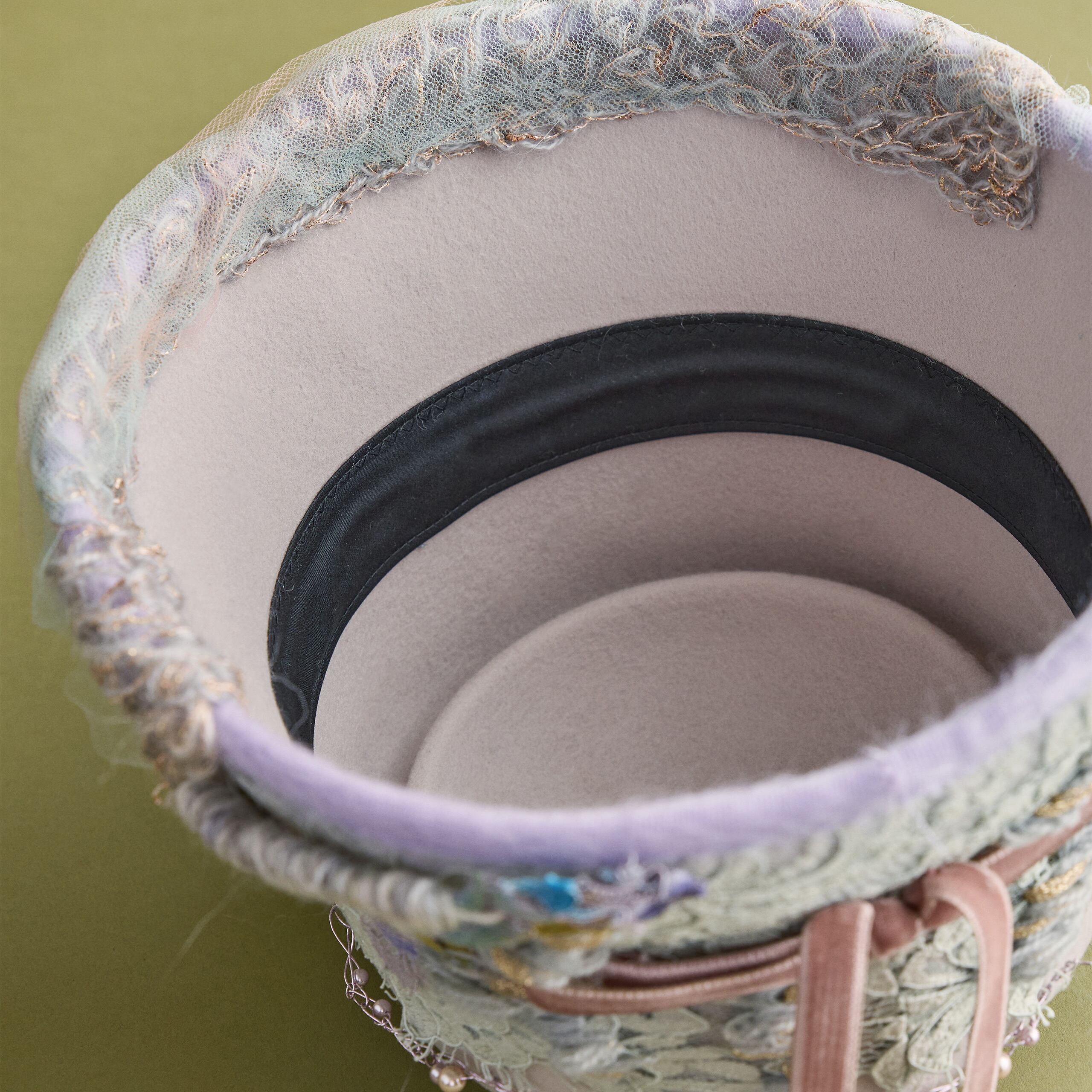 カラーは2色展開。Beigeはミレイの描いた「オフィーリア」そのままをイメージした色合い。MintはCIRQUTURE独自の解釈による、より淡く儚いファンタジックな色合いのオフィーリア。どちらも、帽子でありながらアートそのもののような存在感を放っています。「頭に乗せるアート」として、お客様に纏っていただけることを願っています。