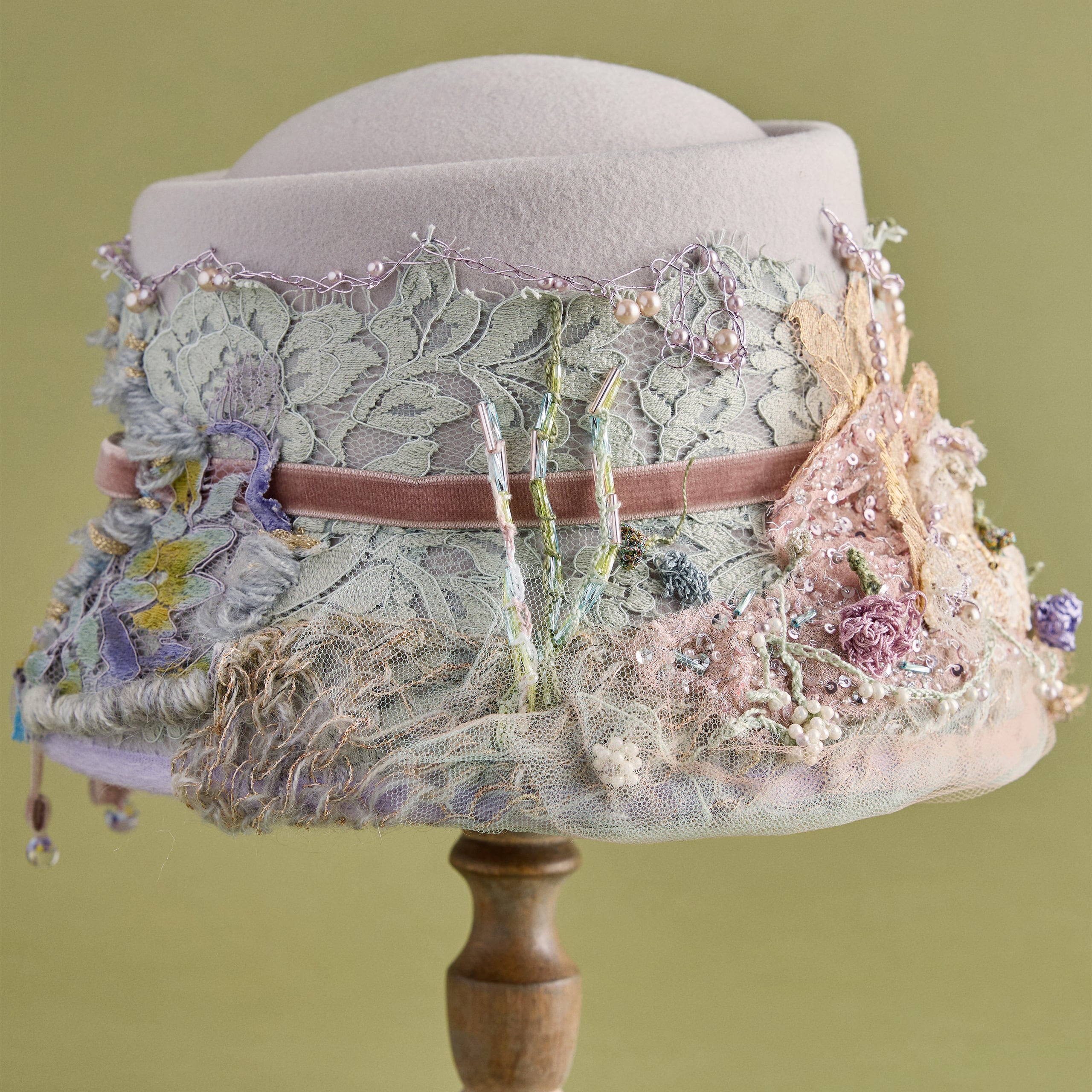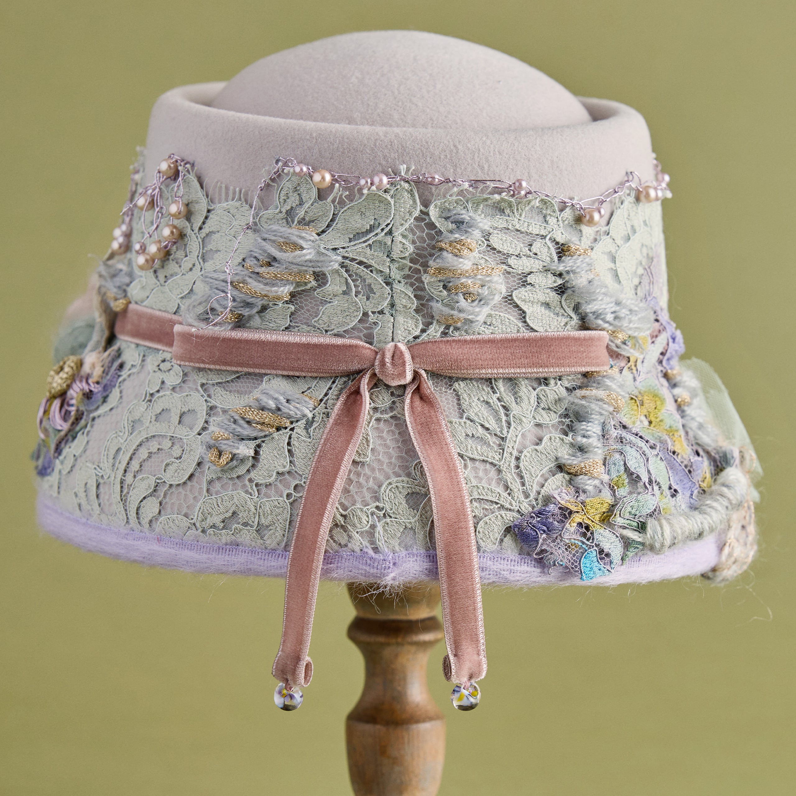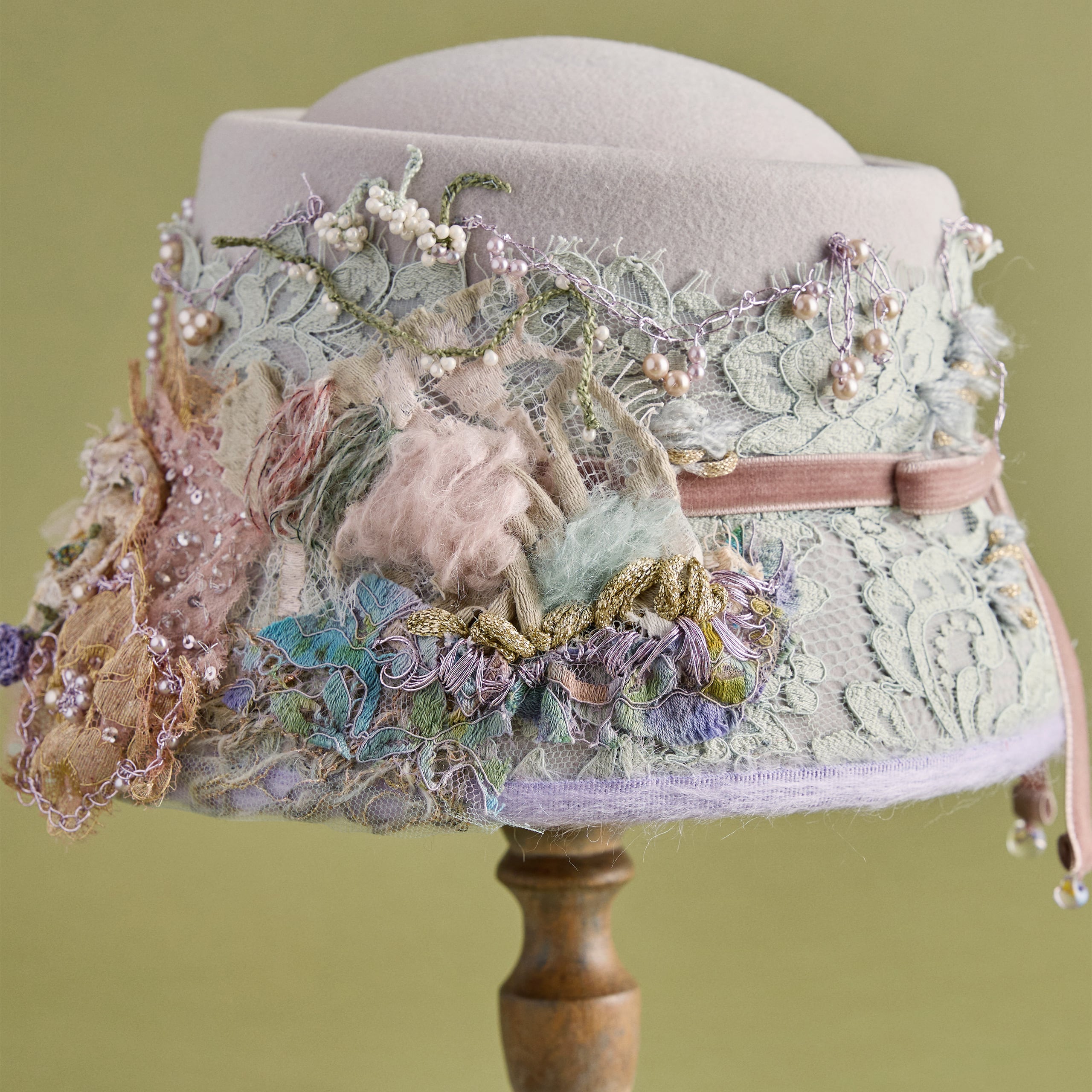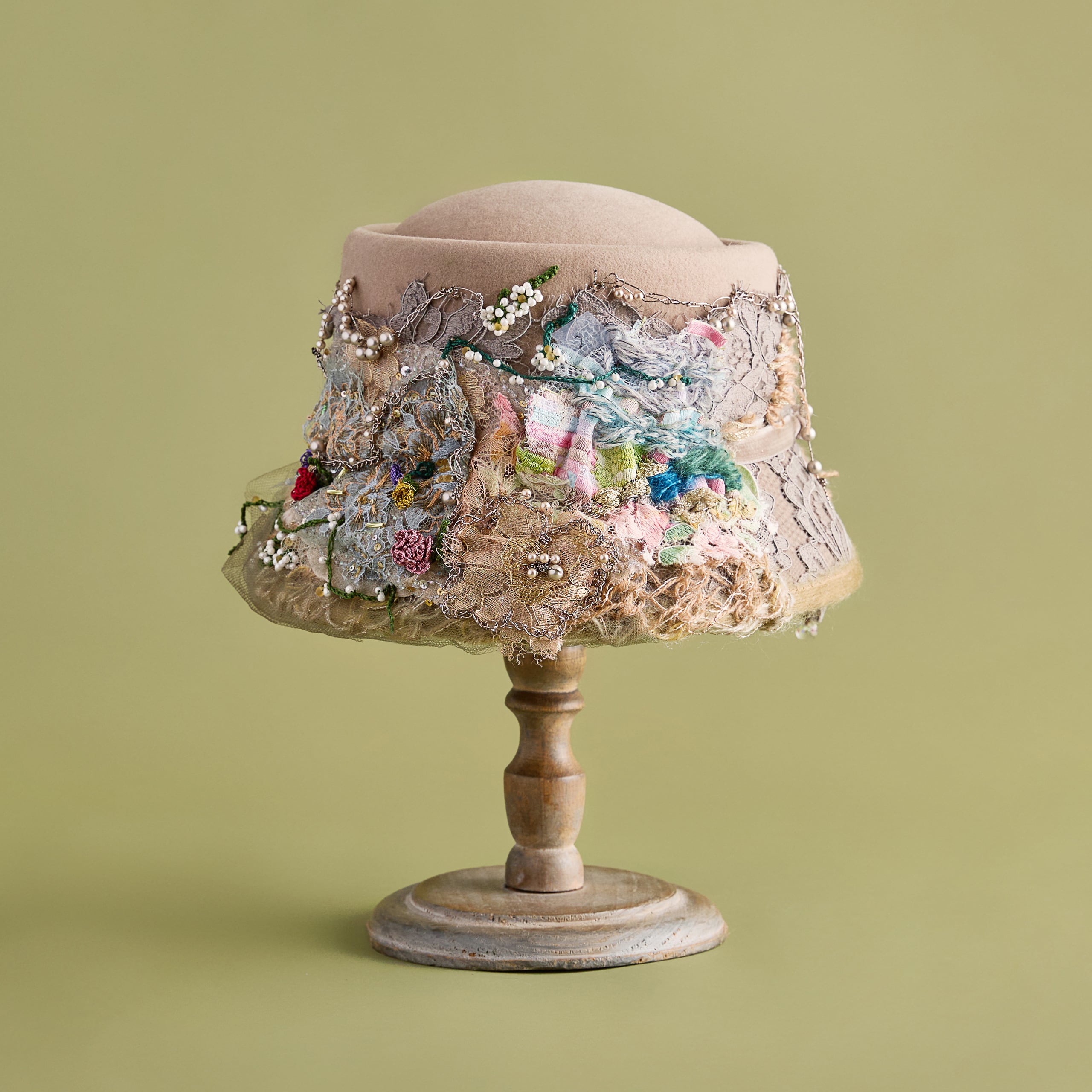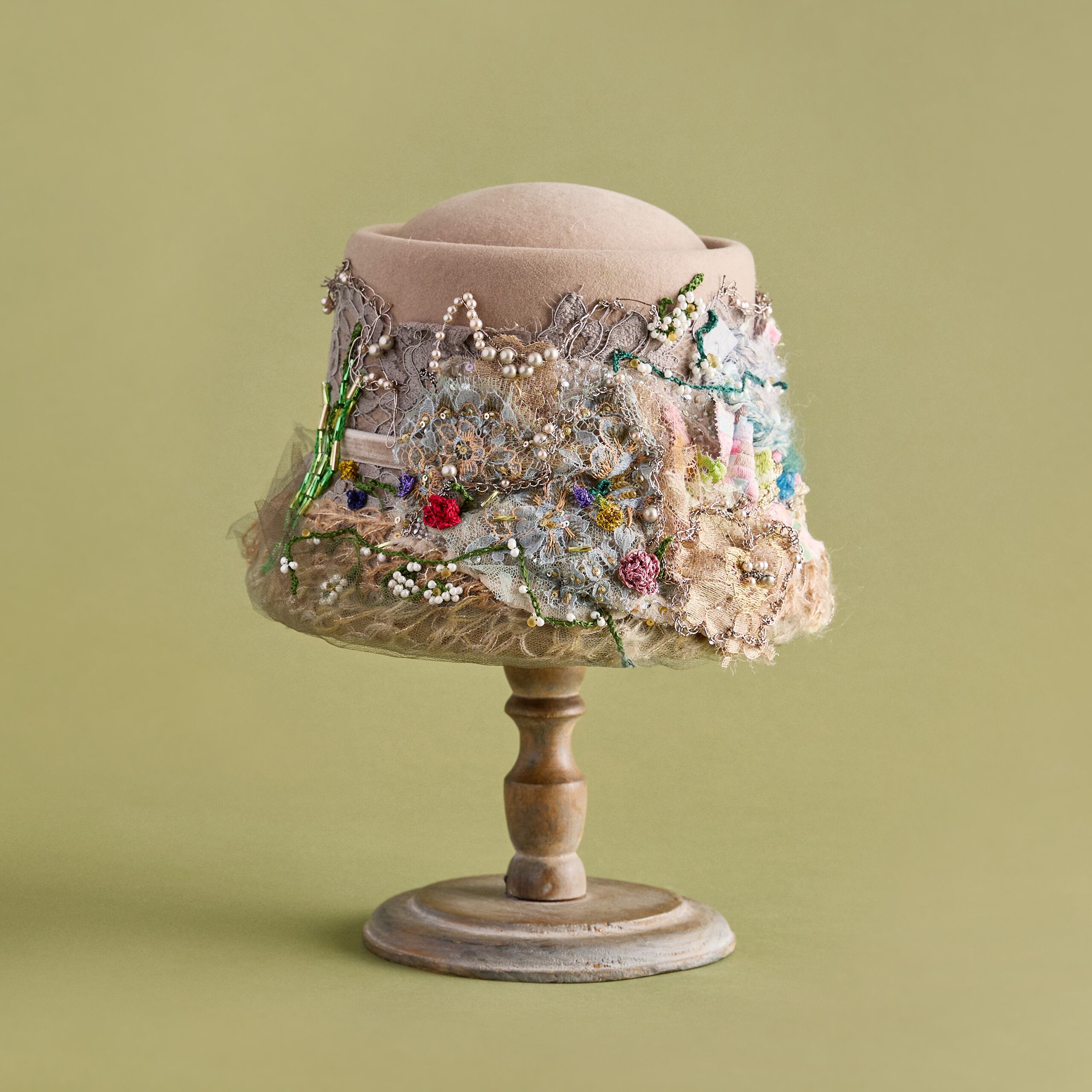 カラーは2色展開。Beigeはミレイの描いた「オフィーリア」そのままをイメージした色合い。MintはCIRQUTURE独自の解釈による、より淡く儚いファンタジックな色合いのオフィーリア。どちらも、帽子でありながらアートそのもののような存在感を放っています。「頭に乗せるアート」として、お客様に纏っていただけることを願っています。
