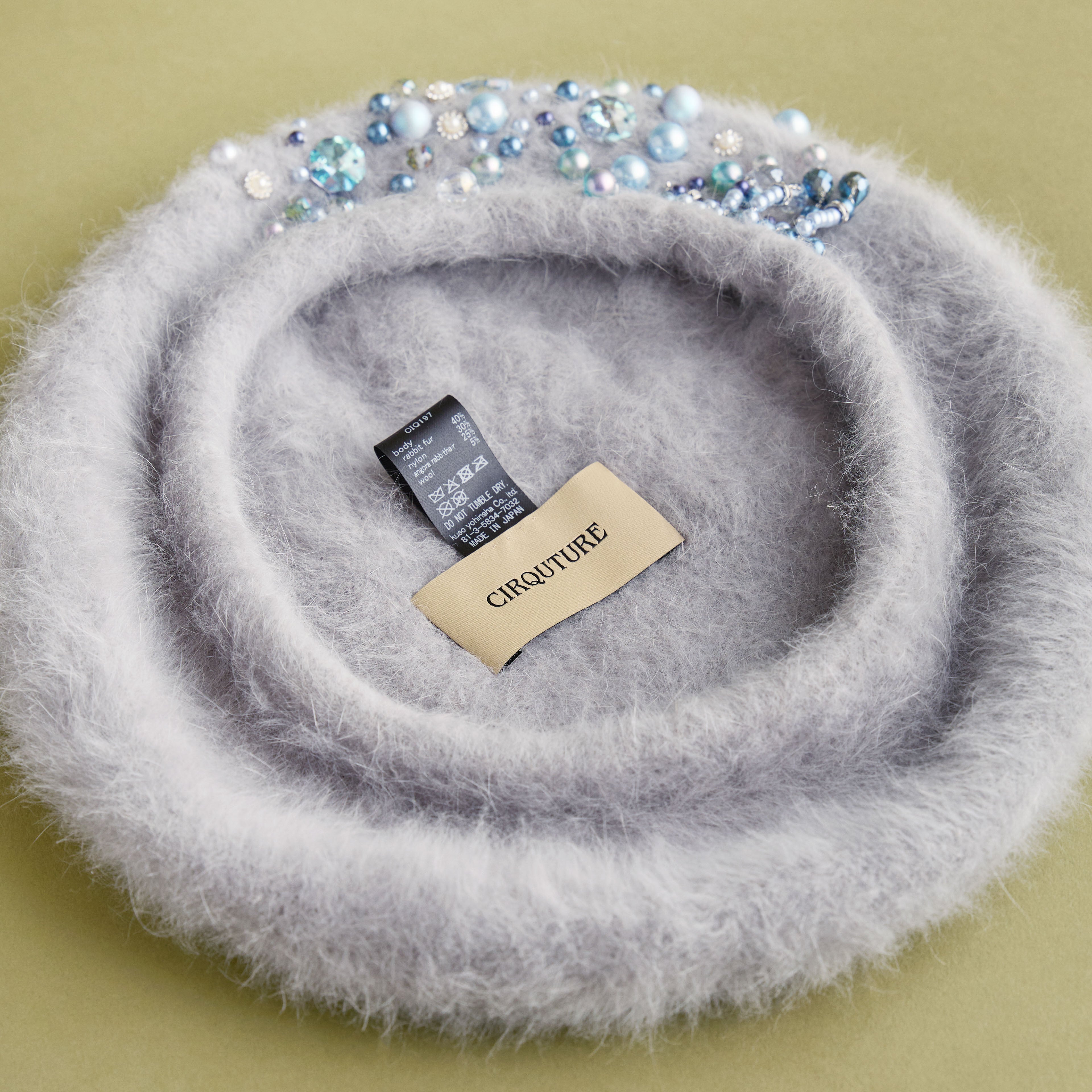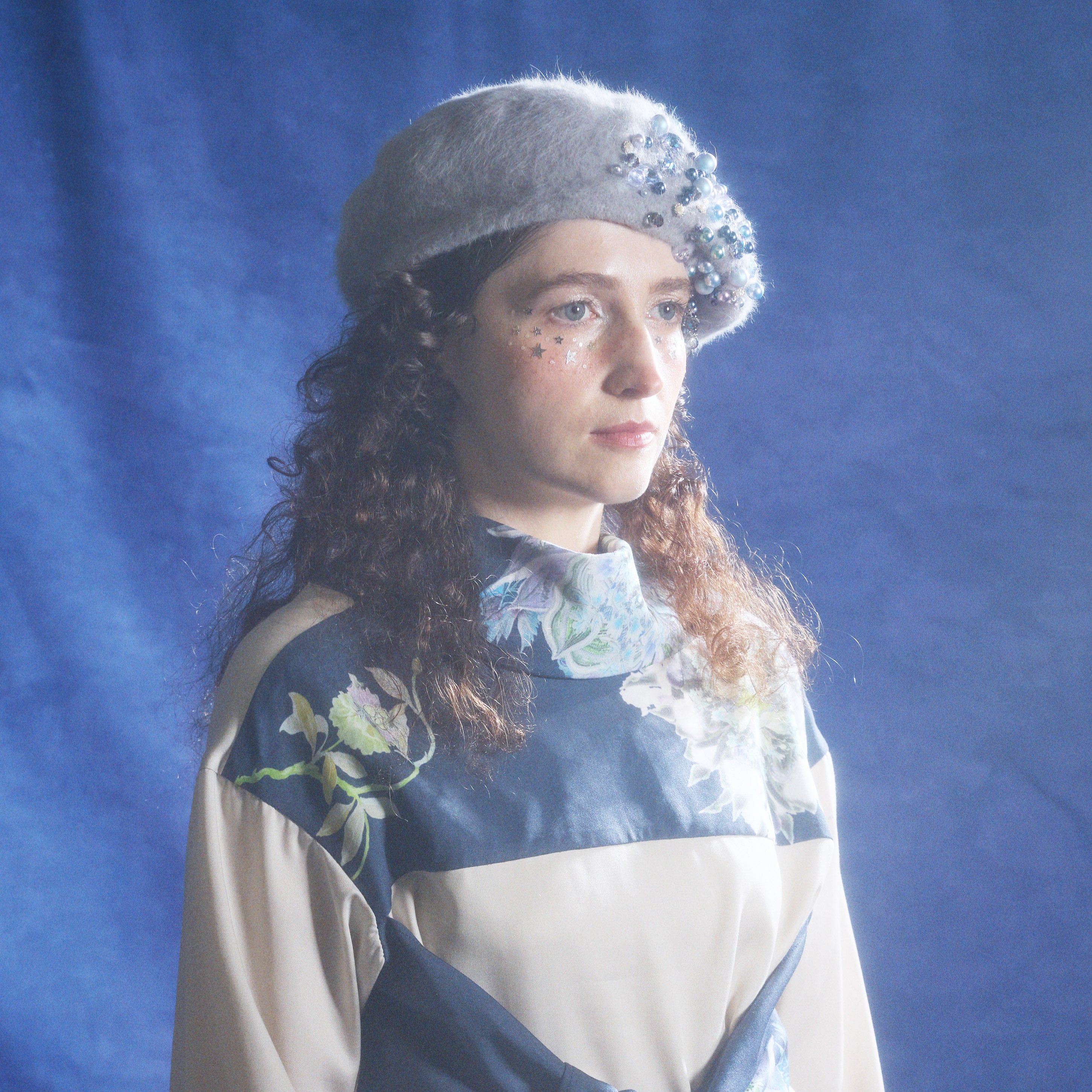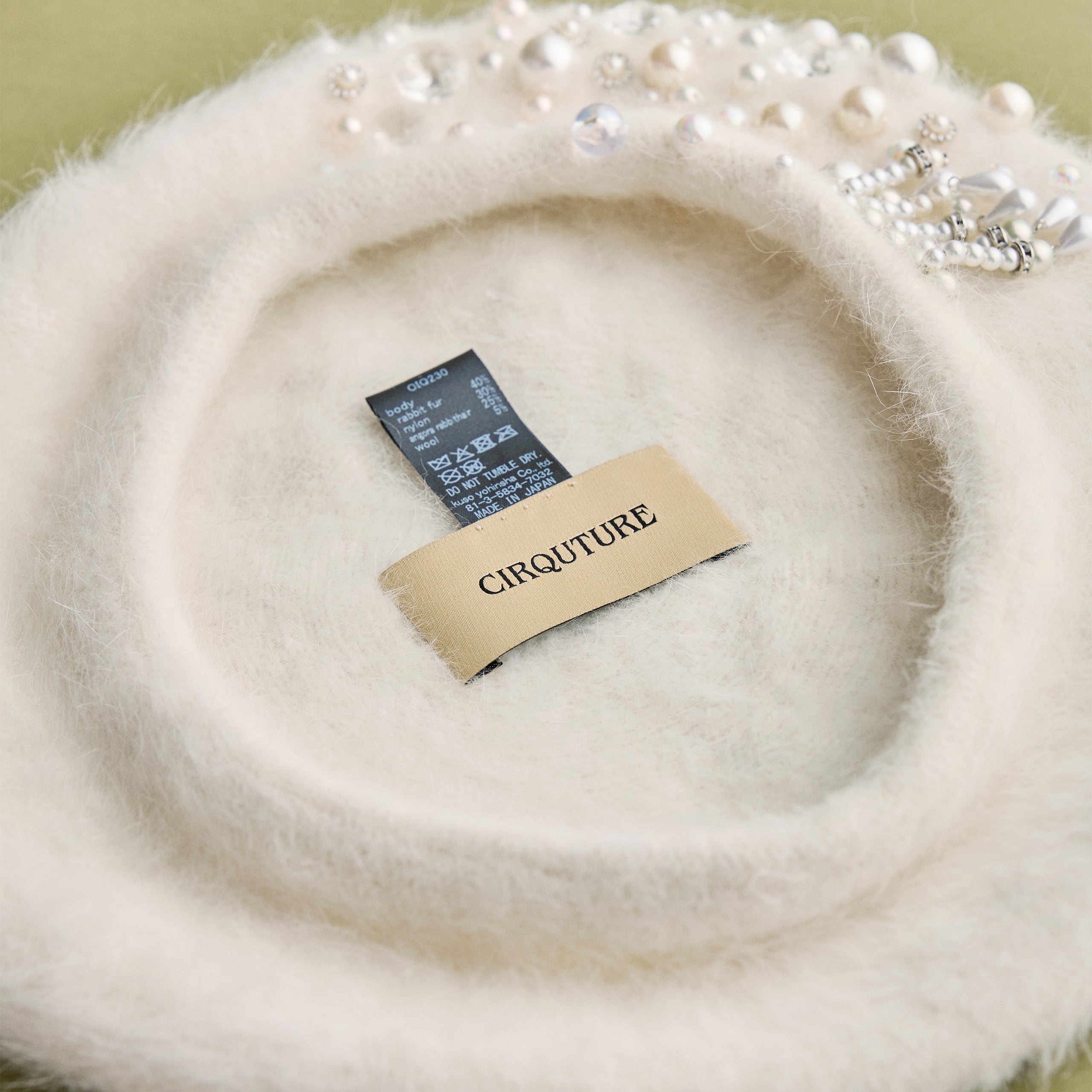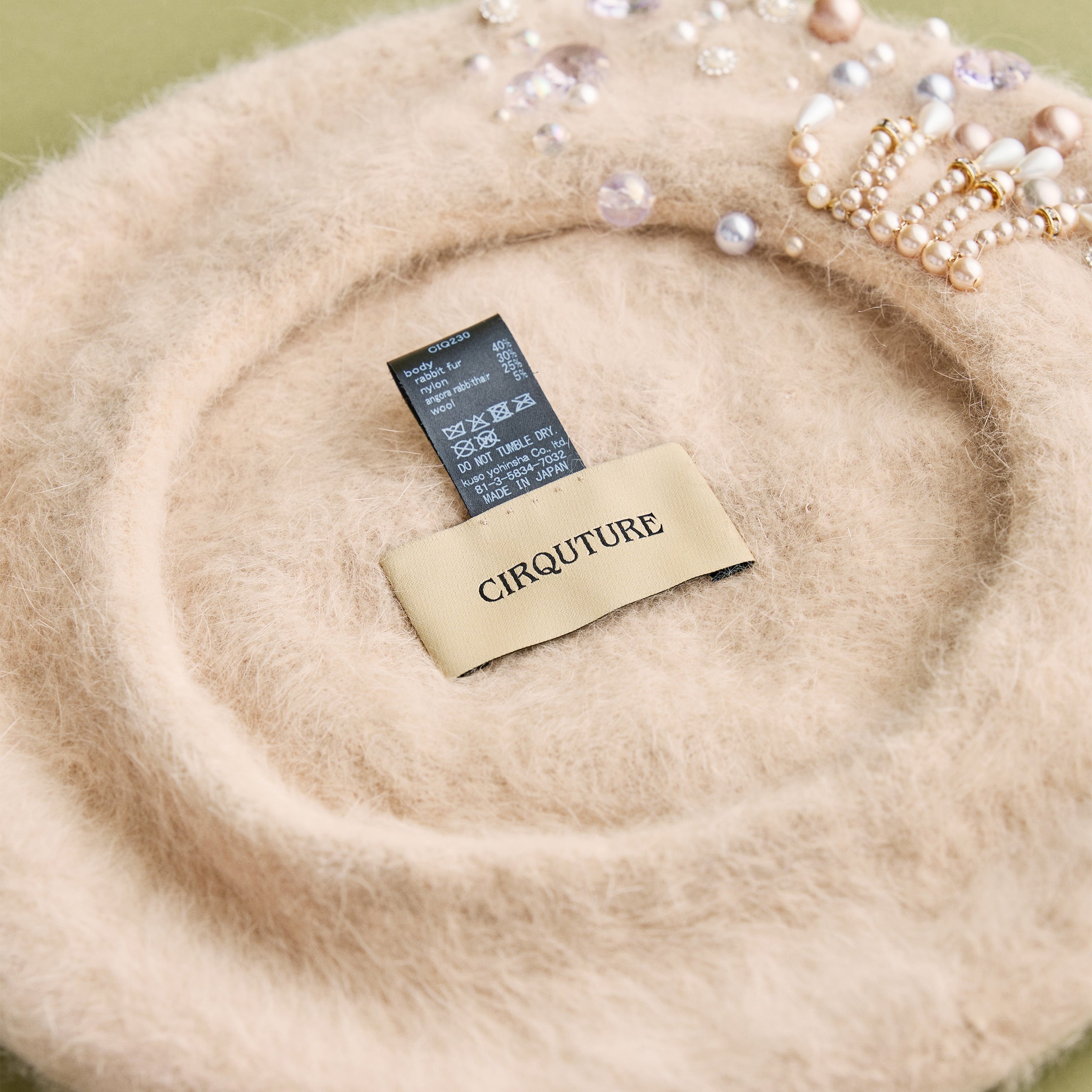 帽子自体は、被りやすいボリュームのベレーなので柔らかく頭に馴染みます。200粒を超える数のビーズは入念に縫い付けておりますが、強い負荷がかかったり、何かにひかっかってしまうと糸が切れてしまう可能性がありますのでご注意くださいませ。