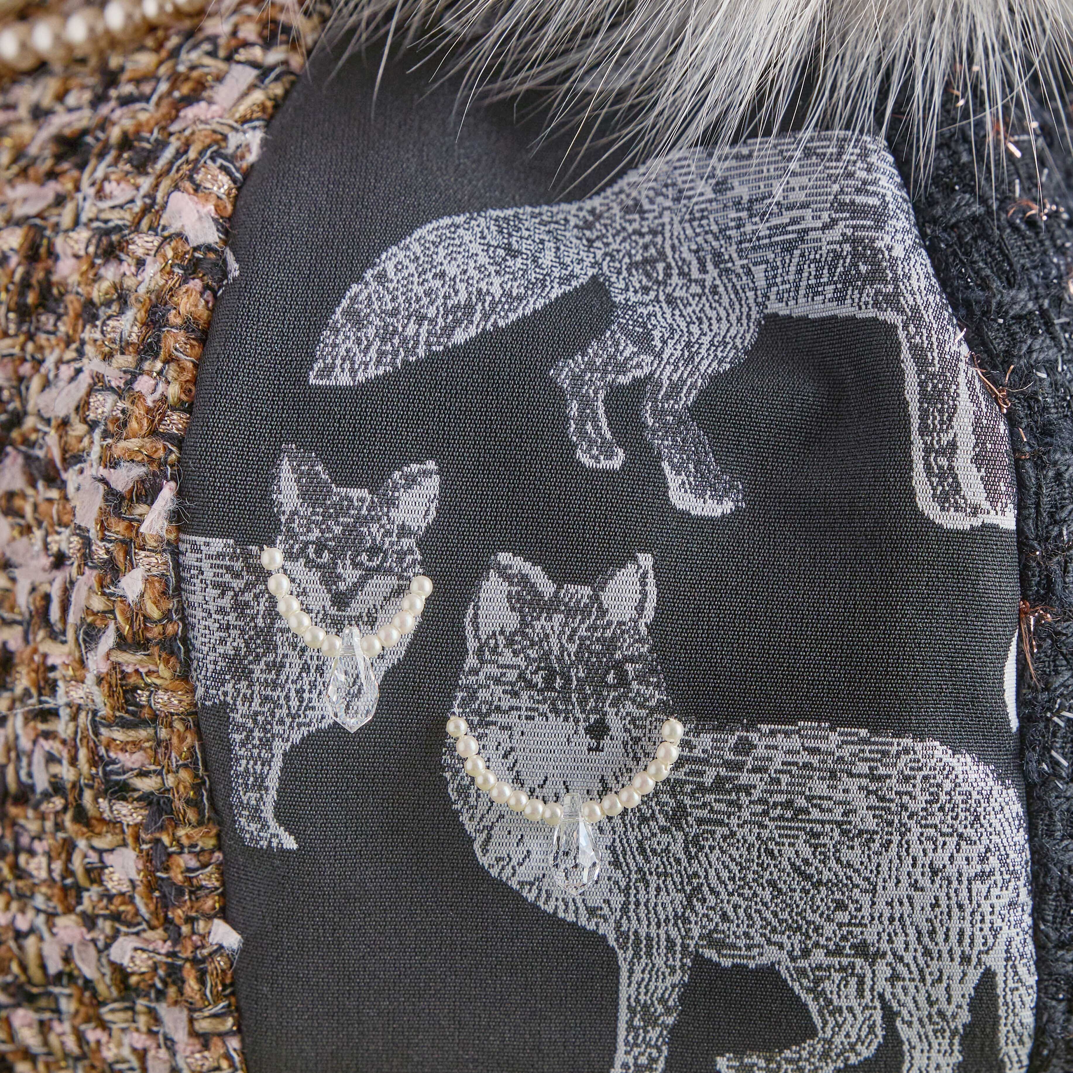 ⑥イタリア「Nero su Nero(ネロスネロ)」の狐ジャガード織(首には真珠の首飾りを纏った狐)