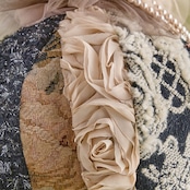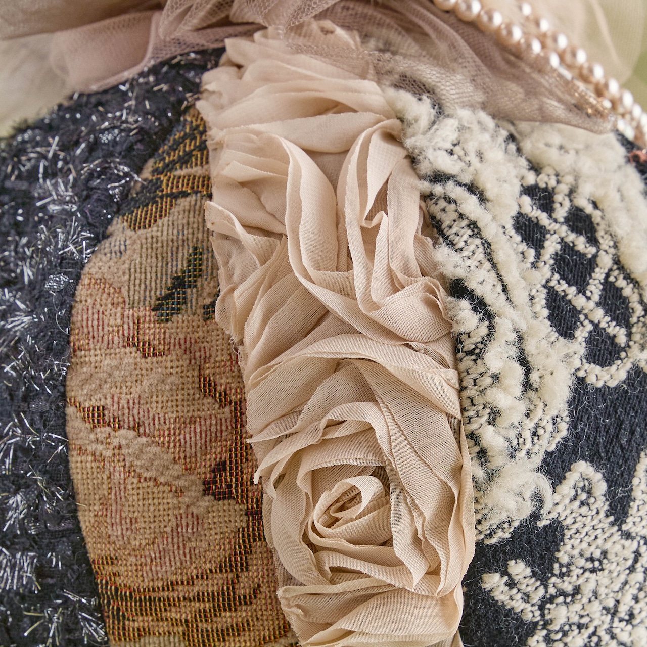 ⑦スペインの工房で織られたインテリア用ゴブラン生地8イタリア製の薔薇刺繍生地のかけらをトッピング。