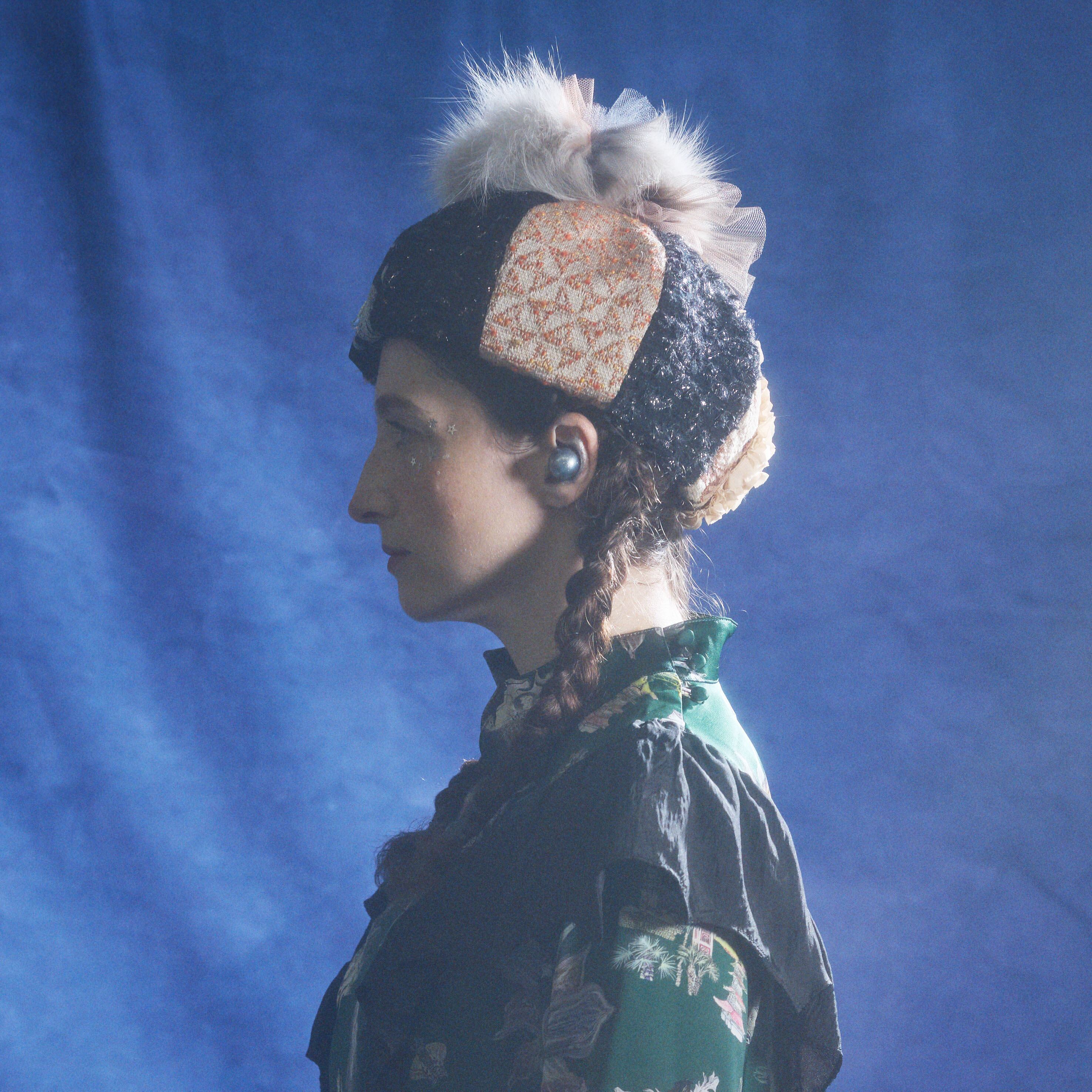クラシカルでありながら、どこかサーカスのような自由さを感じさせる仕上がりに。夜の森に射す月影のように、幻想的な輝きを纏う特別なベレー帽です。