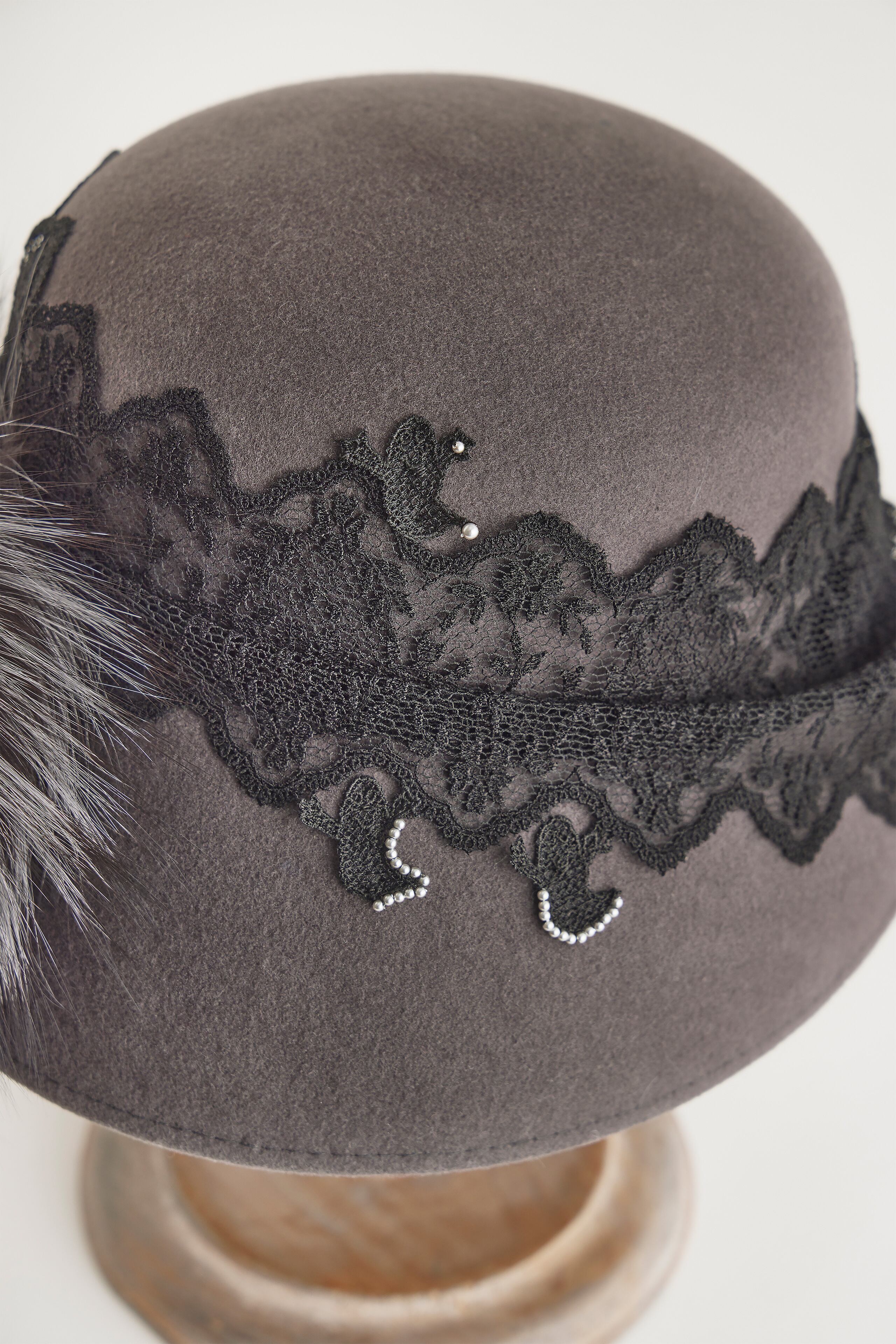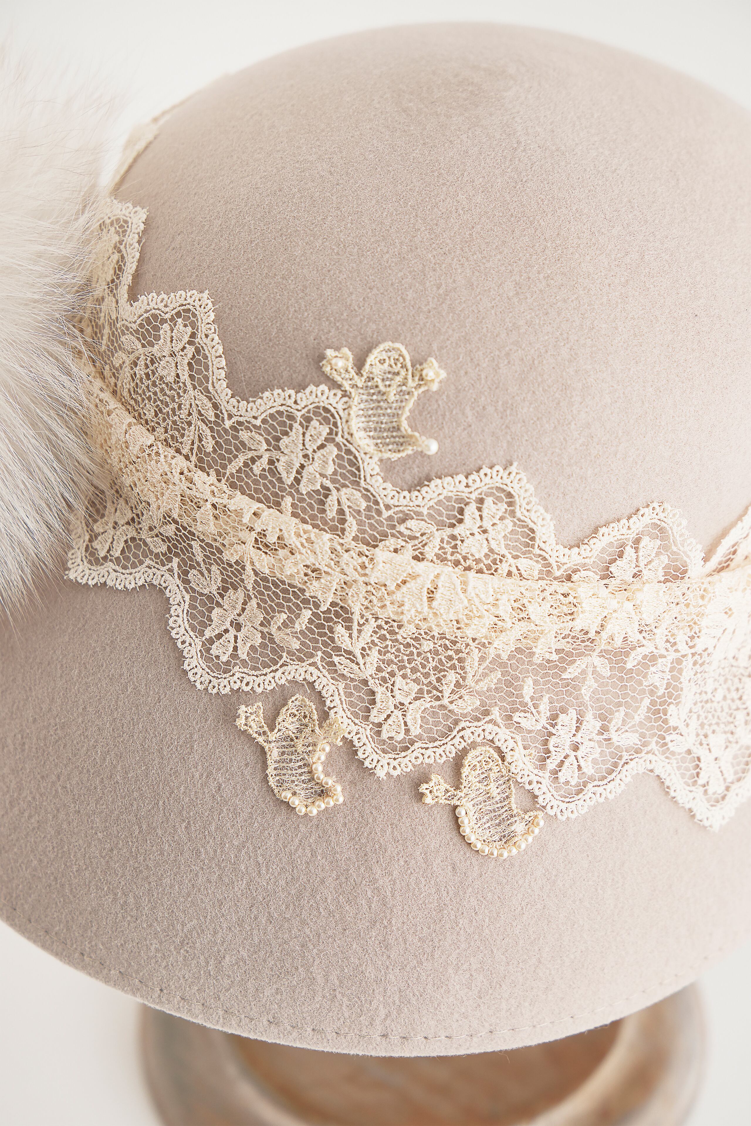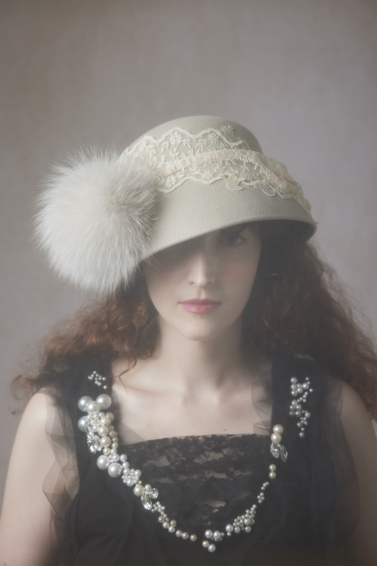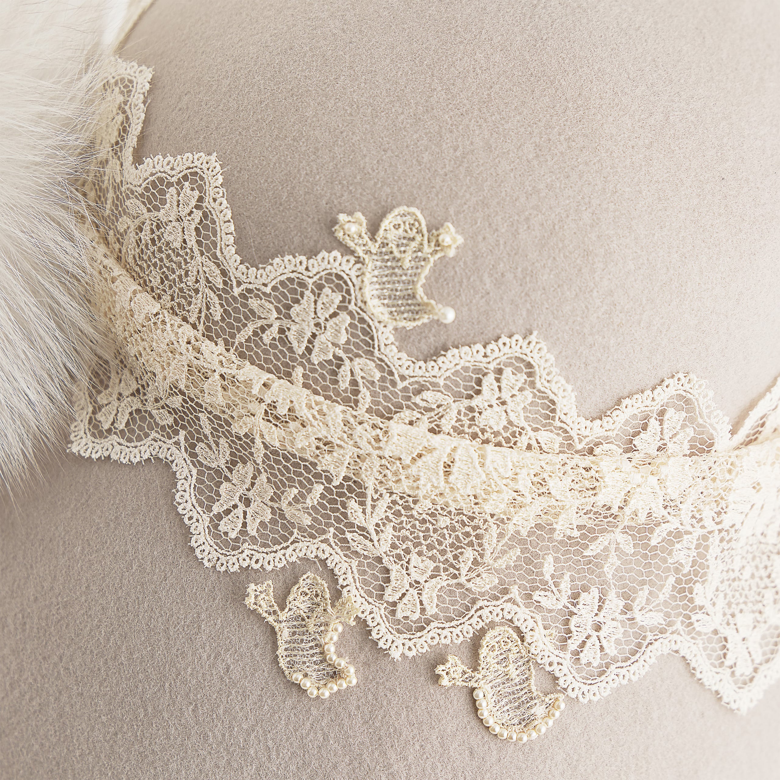レースとお化けとフォックスを飾ったカサブランカハット。