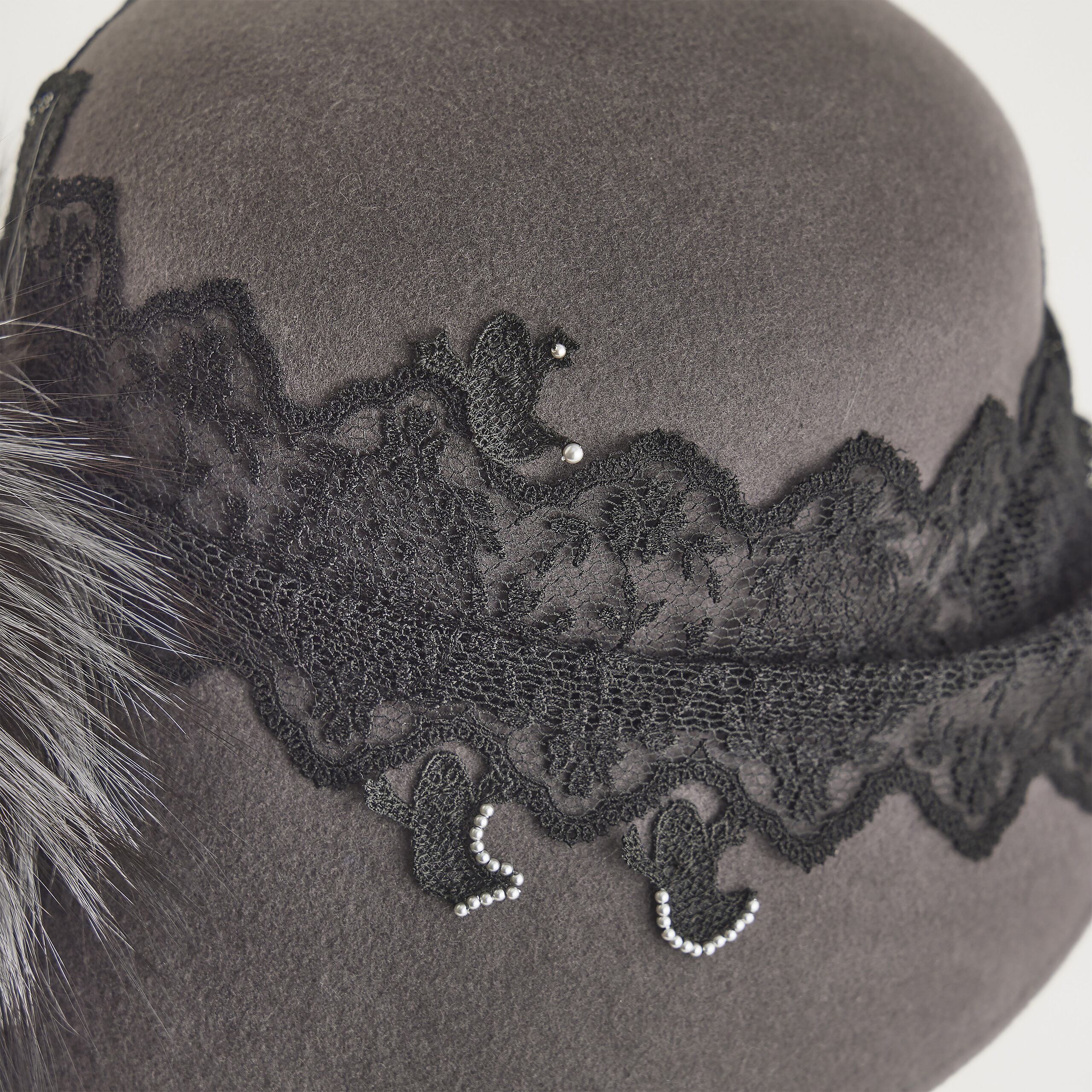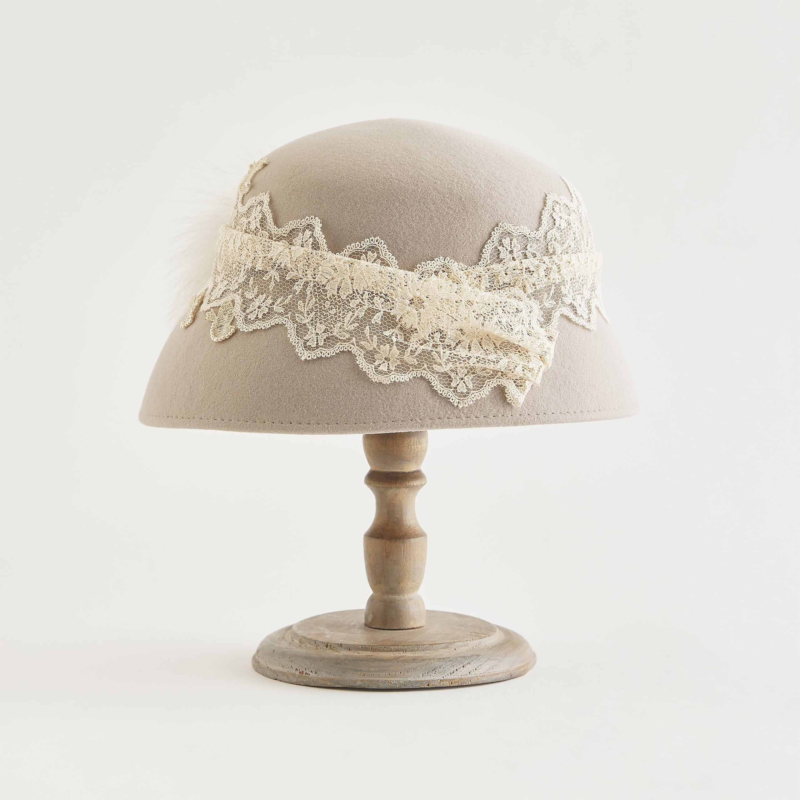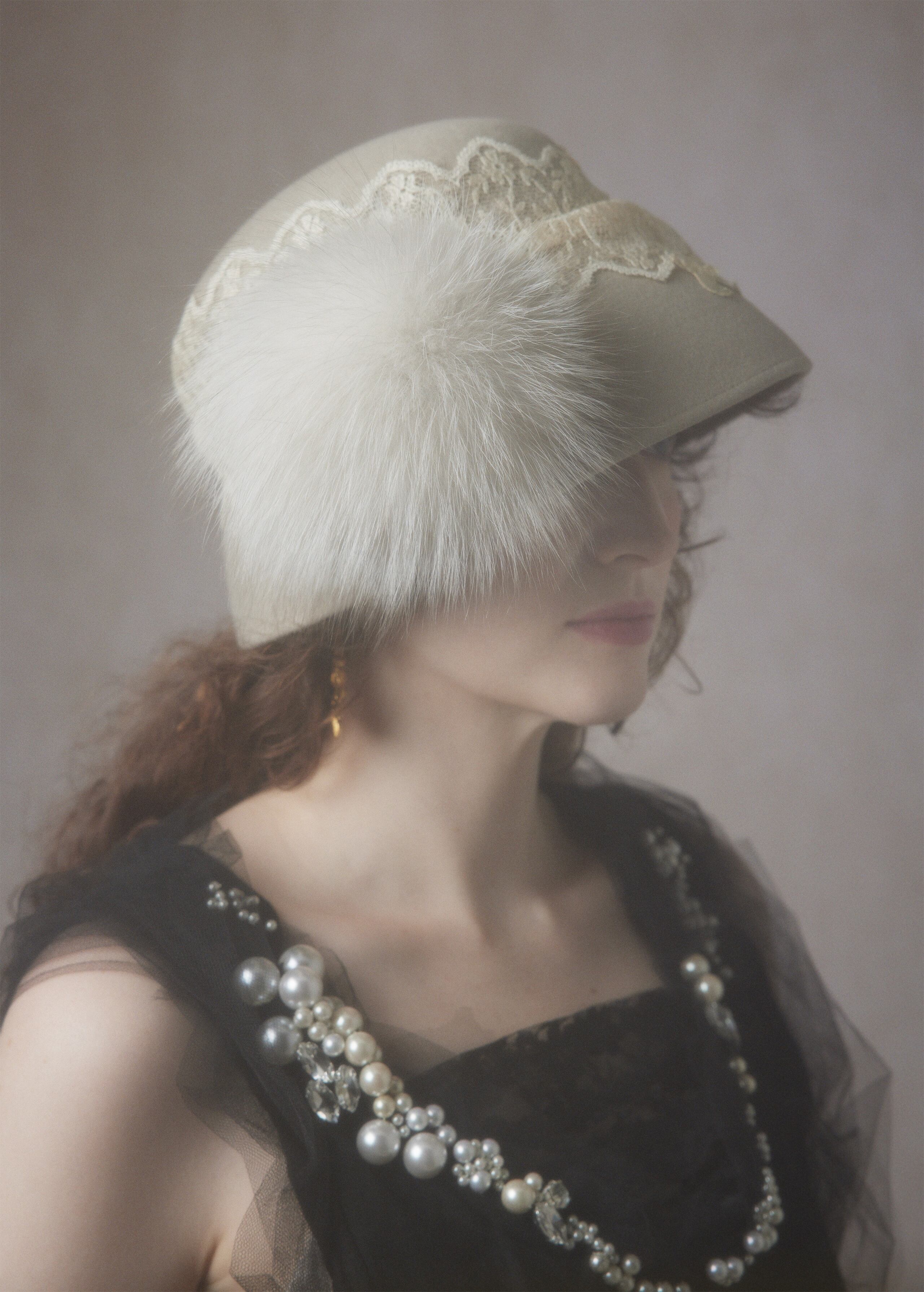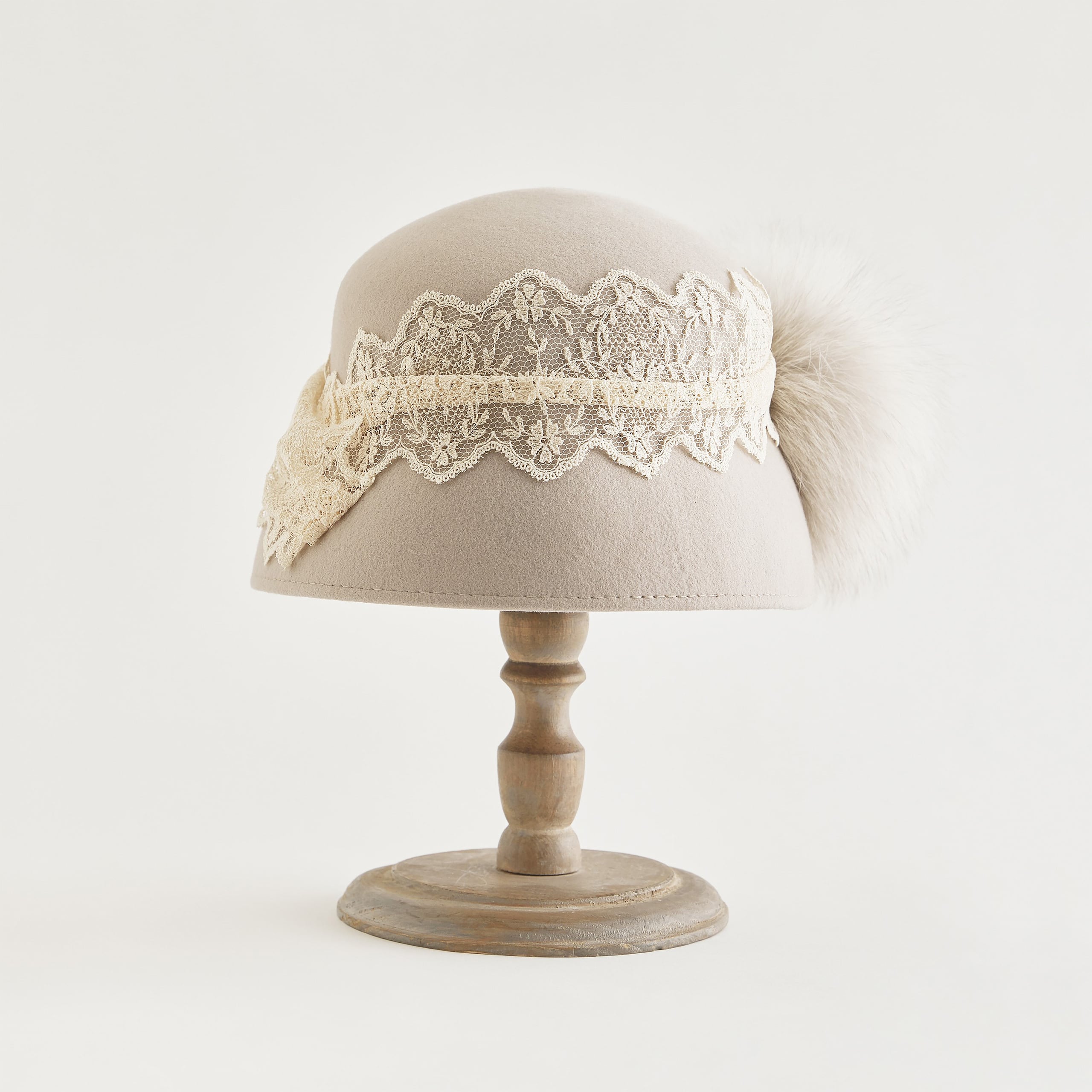 レースとお化けとフォックスを飾ったカサブランカハット。