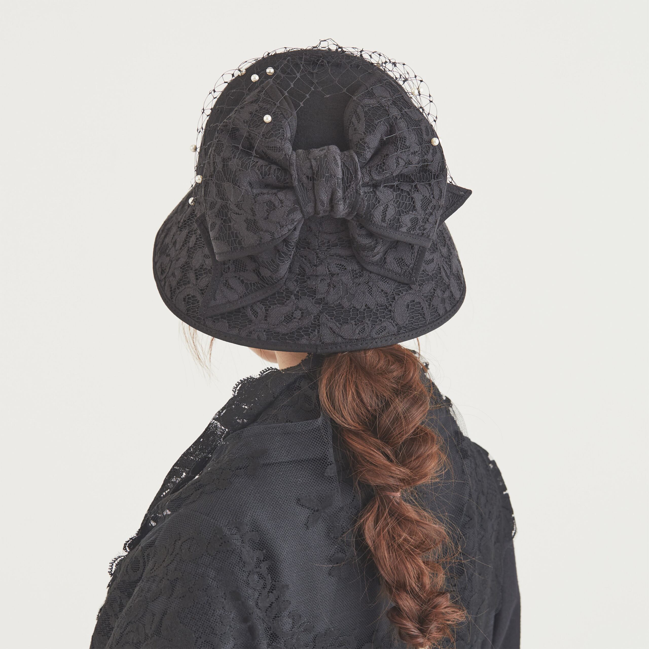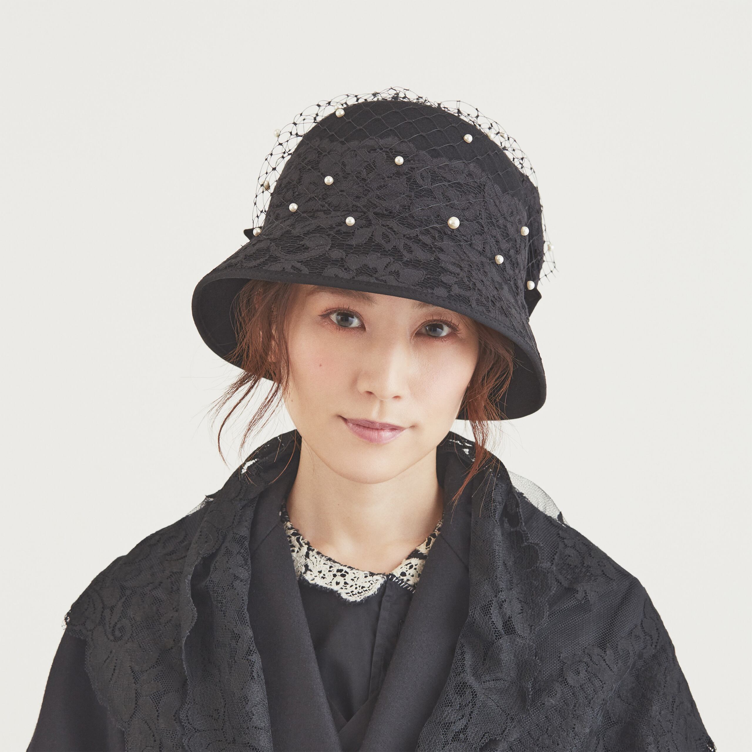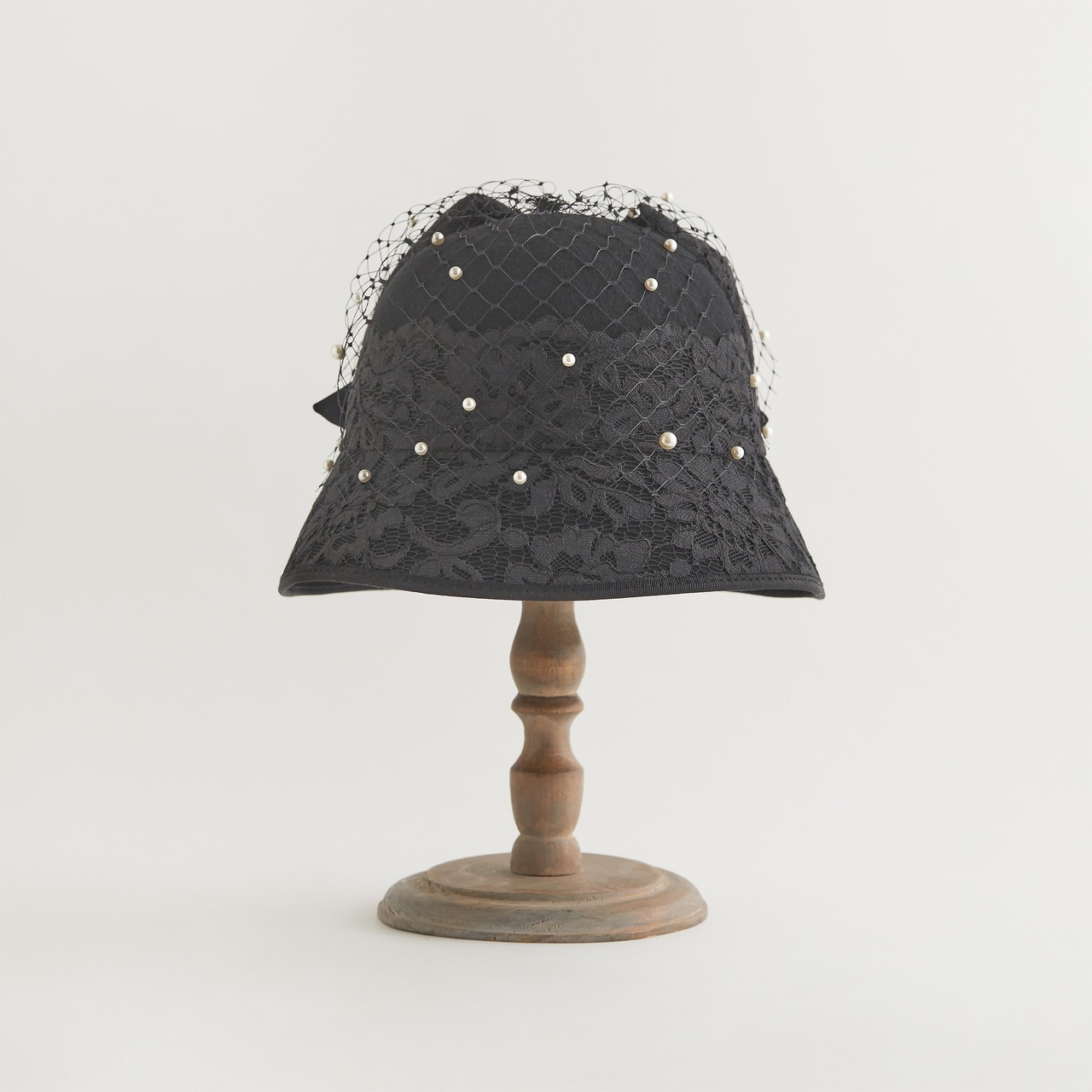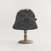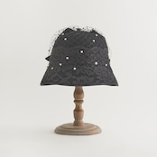 ネットチュールには小さなパールをあしらい、パールが浮遊しているように見せ、帽子本体との間に空間を持たせることによってドラマチックな印象を作り出しました。