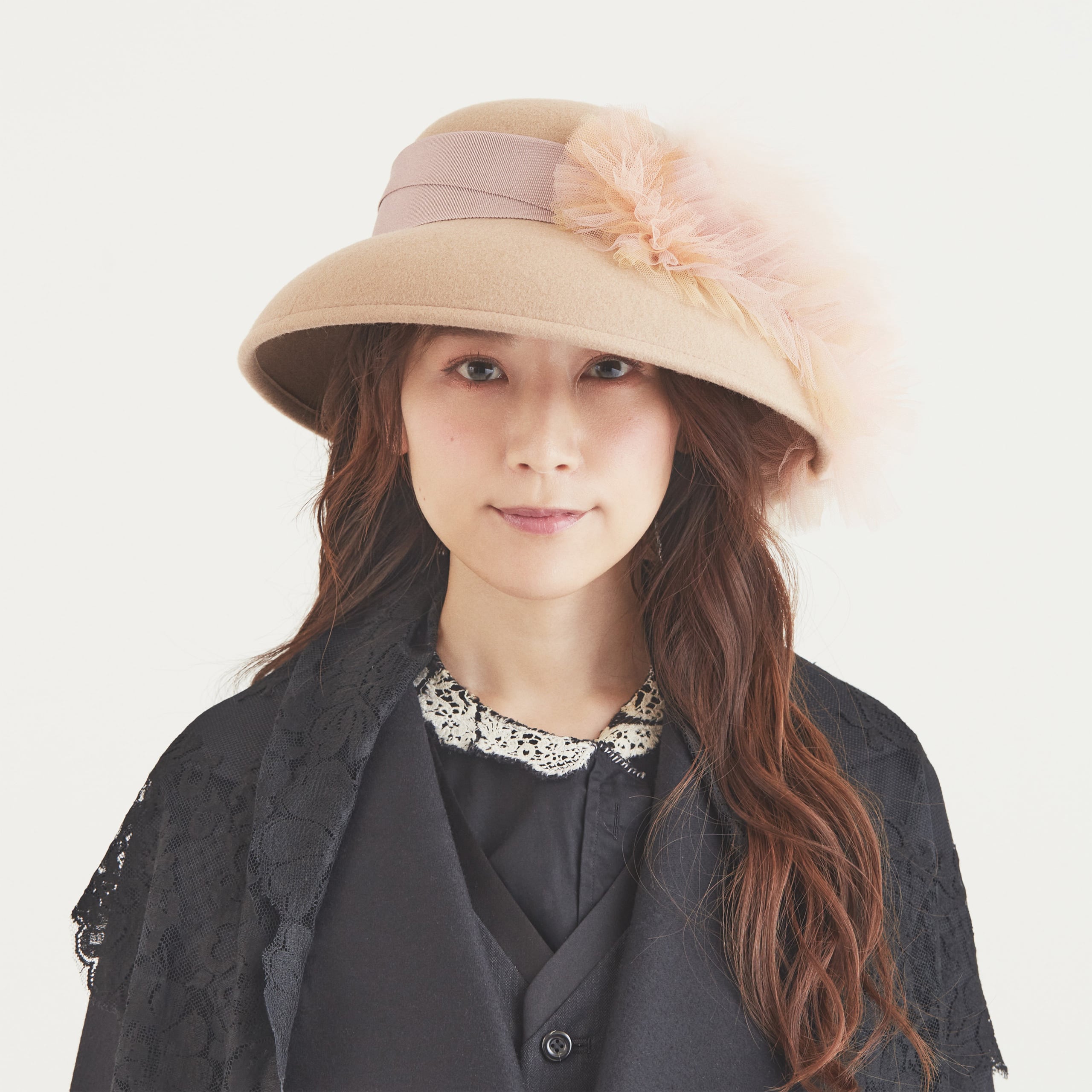 カサブランカ、と呼ばれている湾曲したブリムは女性のお顔を妖艶に見せてくれます。