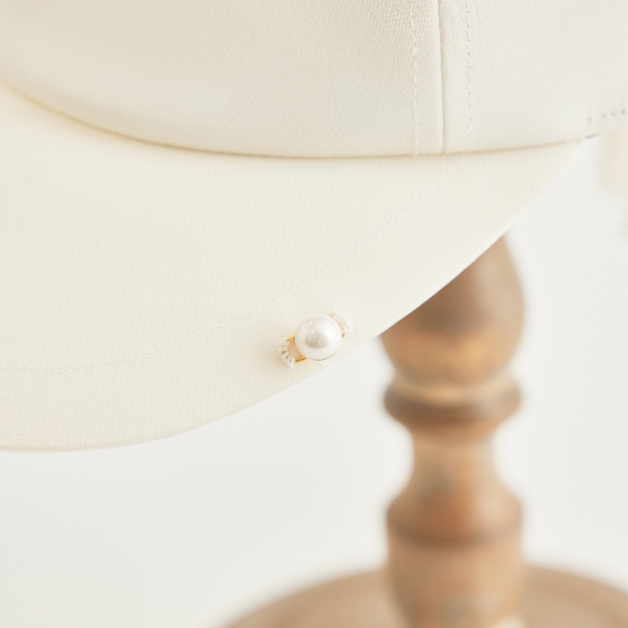 ブリム先端のパールの飾りは、樹脂のパールではなく天然の貝からできていて