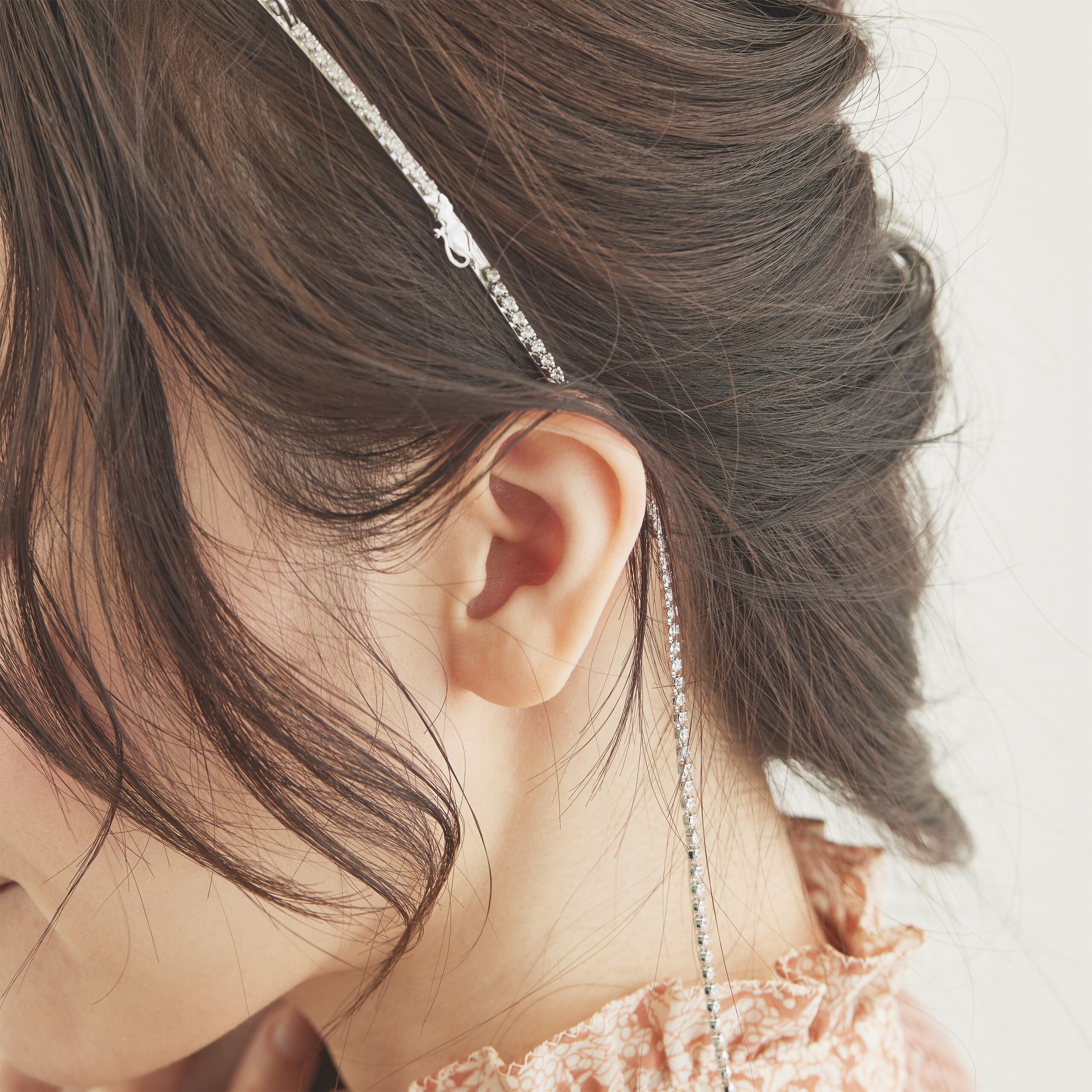 装着すると耳元でラインストーンレーンが揺れて楽しい気持ちになります。